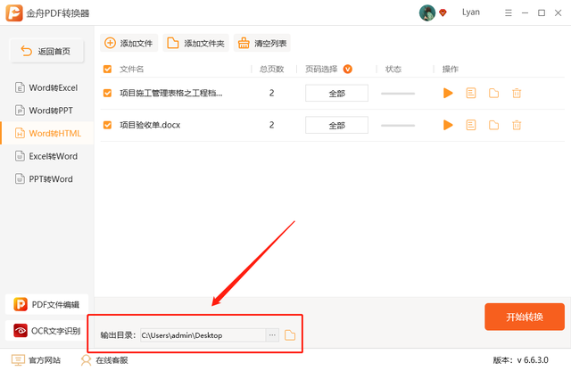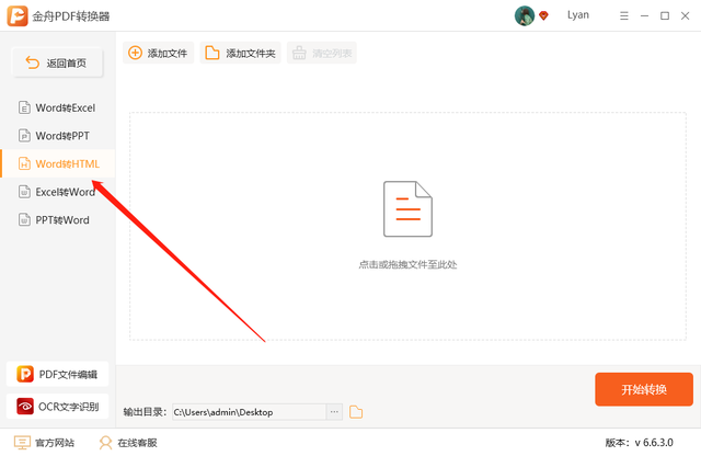 第二步、接着在这里选中“Word转HTML”转换功能;