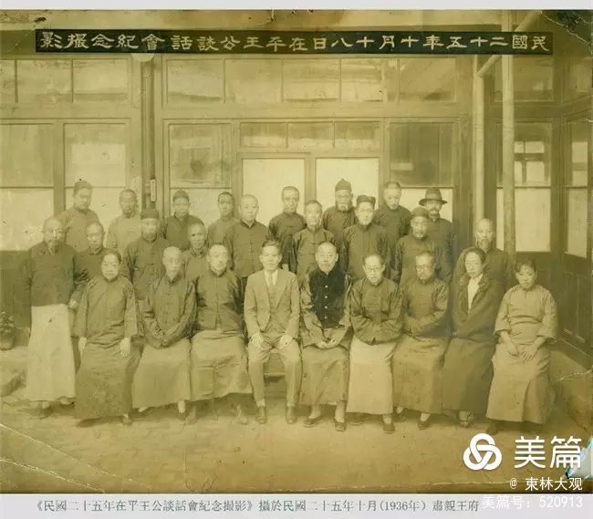 照片前排右二是溥绪的福晋,未育,以侄子庄伯良为继嗣子。家父魁权先生讲:伯良在满洲国承袭的亲王爵位,他擅书画,仪表很好,把太太和两个孩子寄居居在祖父荣懋家里,时常回来找我祖母额勒森布氏要钱花,刚三十岁出头就走完了他的悲剧人生路。