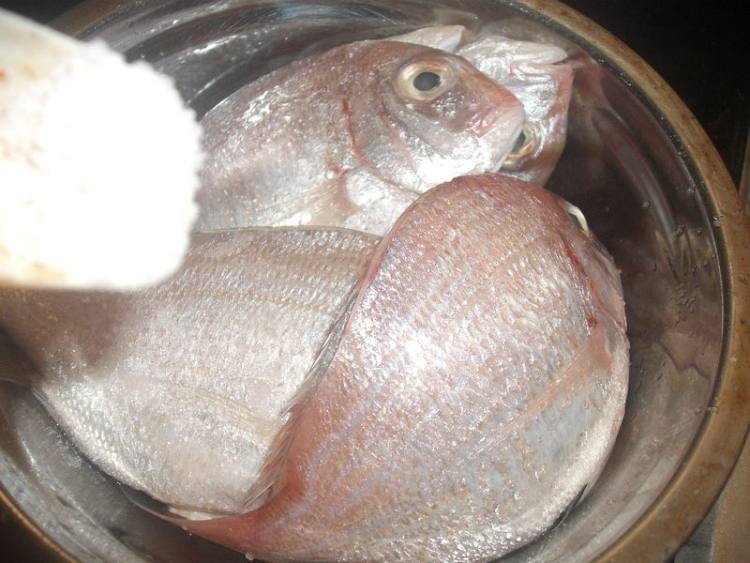 1、红立鱼杀好洗干净洒适量盐巴