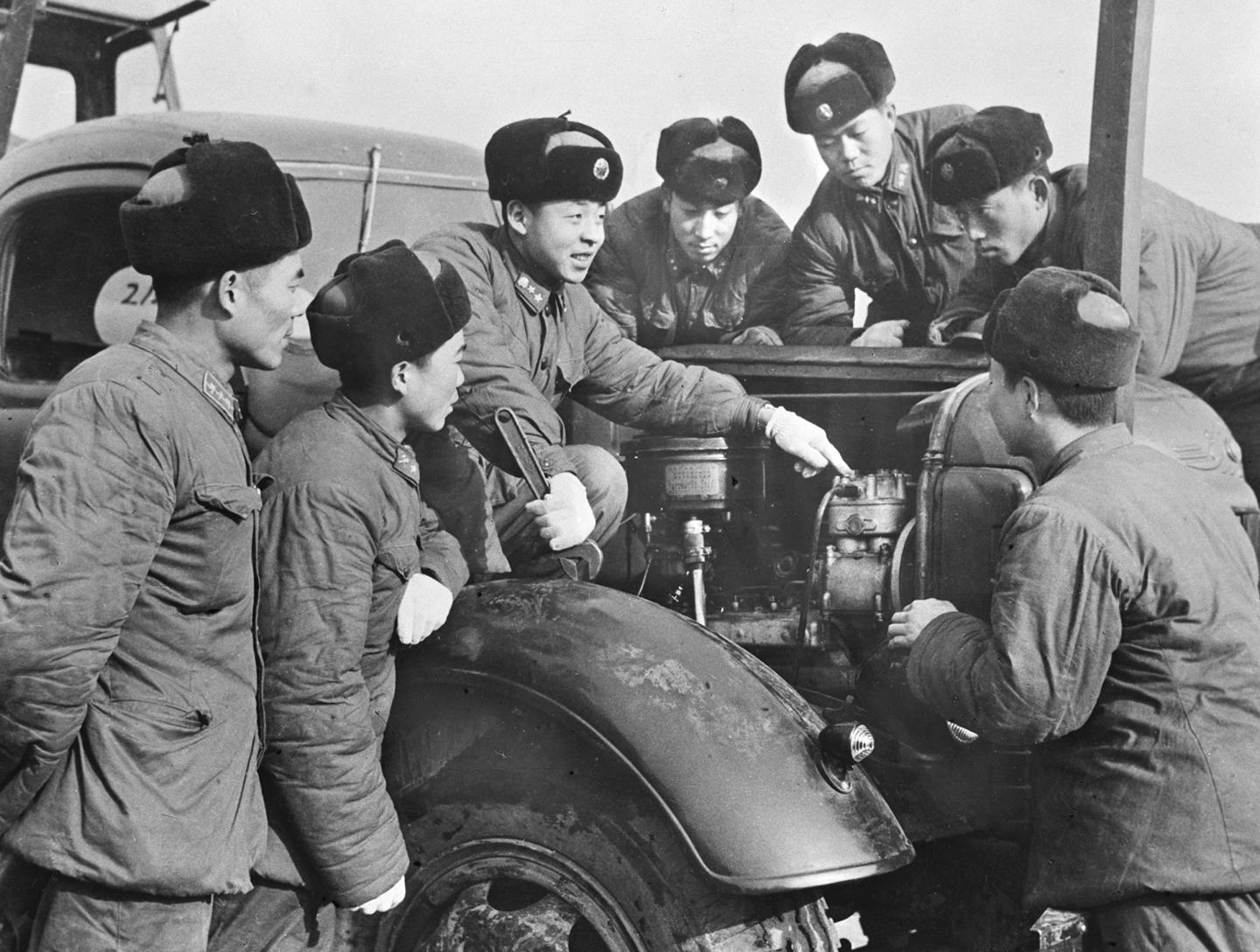 雷锋同志是艰苦奋斗的模范,勤俭节约的标兵。这是他在向战友们介绍节约油料和安全行车的经验。新华社图片