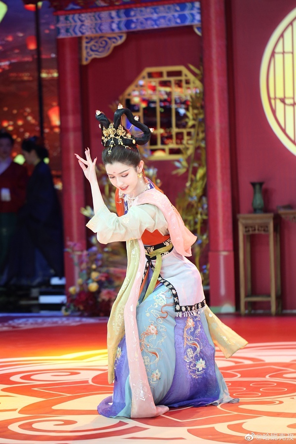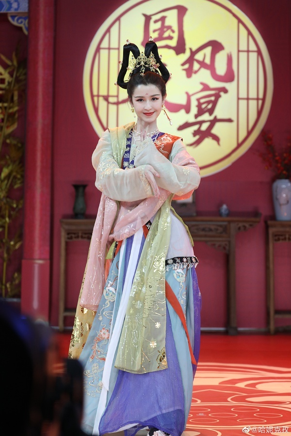 像是此前哈尼克孜在舞台上表演的敦煌舞蹈,你们感受下飞仙髻的仙气飘飘的样子。“飞仙髻”的独特之处就是在于绾发于头顶的繁琐,可看上去就大气逼人,高级又高贵!