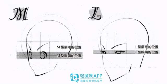 L型人物的头部形状与“男性脸部辅助线”不同,需要单独加以说明。
