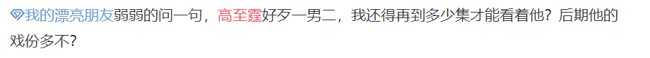 高至霆也似乎一直都有这种魅力和实力,因为这已经不是他第一次因为戏份少,被观众不满了。