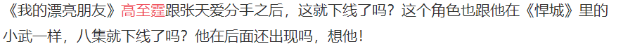 事情是这样的,高至霆在《我的漂亮朋友》中饰演严良坤,是剧中张天爱的初恋男友。