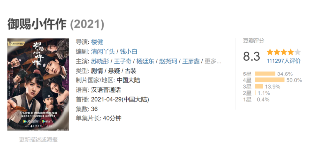 迄今为止,《御赐小仵作》已经完美收官,在豆瓣上也获得了8.3的高分。虽然是小成本网剧却能达到出圈效果,离不开这些设定。