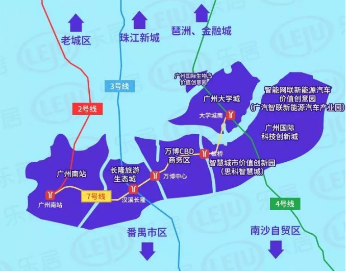 在番禺区2021年政府工作报告中,提出要以“万博长隆-广州南站”为核心,打造现代服务业集聚区。并且推动万博长隆片区扩容提质,以万博商务区为中心,向东南西北规划拓展发展空间: