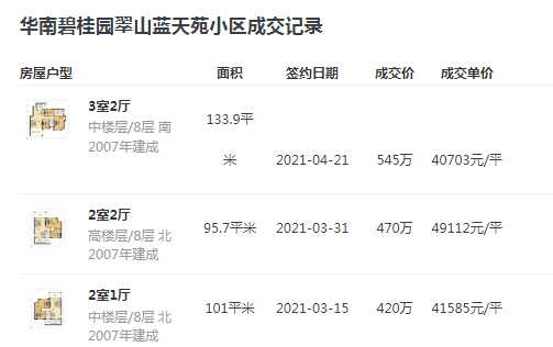 以华南碧桂园为例,碧翠苑组团近期成交价格还在2字头,而翠山蓝天苑是4万+,超大大户型的盈峰翠庭组团,成交单价则到了9万元/㎡,总价千万级。