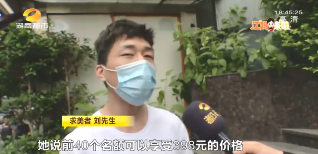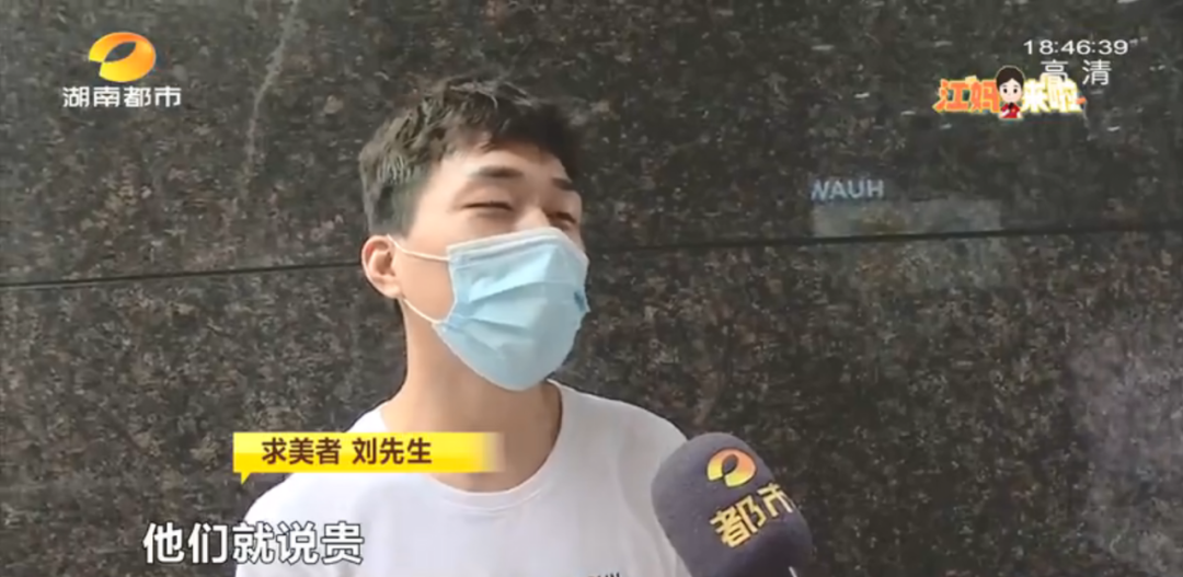 求美者 刘先生:她说看到我脸上痣多,说你选最贵的,我们这儿取颗痣200块钱,你选纹眉最贵的,我跟店长申请,把你脸上的痣都包了,我想着,单取一颗200块钱,点我脸上的痣就要2000元,我这样想,就选了最贵的。