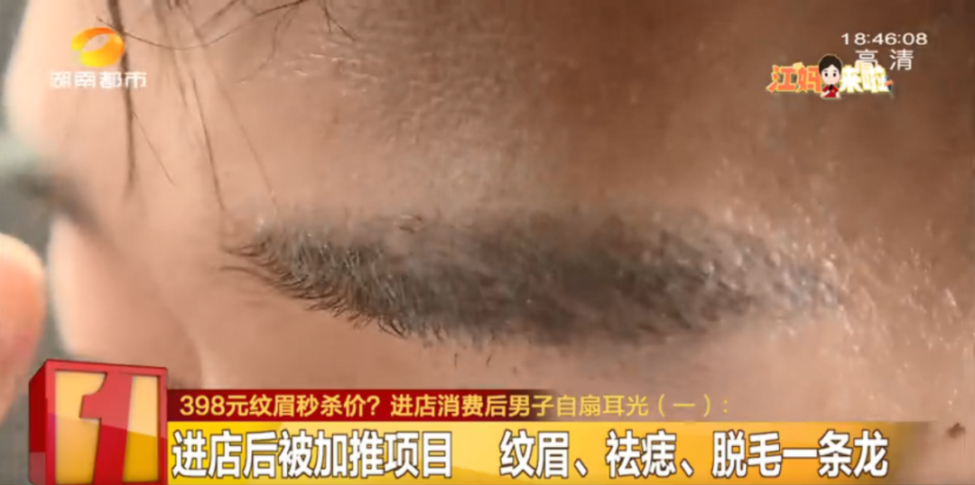 原本只想花398元纹个眉,没想到进店之后,在对方的步步游说之下,刘先生 不仅纹了眉,还点了痣,还把眉毛旁边多余的毛发以及络腮胡都进行了生活美容。