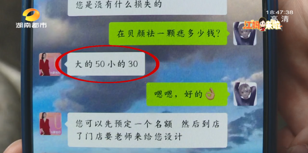 5月20号消费完9659元,被朋友点评“消费贵了”之后,5月22号,刘先生再次添加这家美容院的客服,结果被告知,点一颗痣只需三到五十元,脱毛3次只需380元。