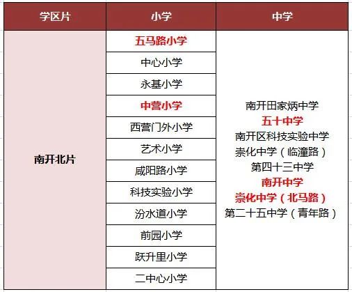南开北片共有13所小学,但重点小学只有两所,为中营小学、五马路小学。