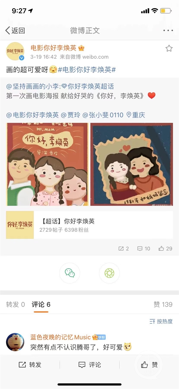 在妈妈的不断肯定和鼓励下,婧喜的艺术天性被充分释放出来,她尝试各种有趣的新事物,在看了电影后,创作的“李焕英”主题插画被《你好,李焕英》剧组和贾玲、张小斐等转发。