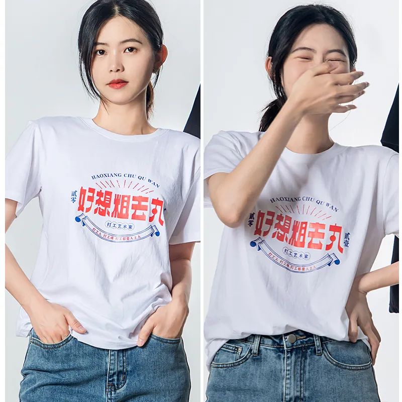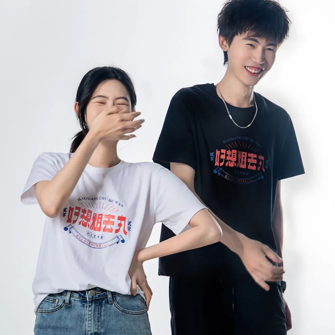 有7个国潮特色印花款式可选:發、财、热、日进斗金、壹身正气、好想粗去丸、国潮京剧。