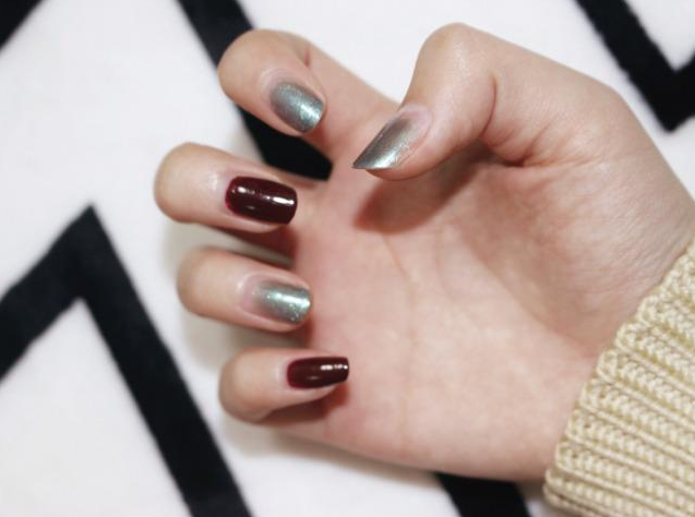 蓝色、紫色、灰色、黑色……这类暗度高的颜色能起到使甲面有收缩感的作用,能让甲面看起来比实际上要小,适合宽、大、硬、厚的甲面。
