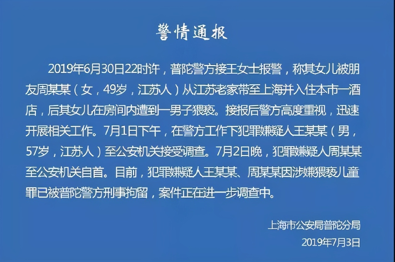 2019年6月30日,上海警方接到一女士报警,称其女儿被朋友周某某从江苏老家带至上海,入住本市一酒店后,女儿在房间内遭到一男子猥亵。7月1日,新城控股原董事长,57岁的王振华接受公安机关调查,次日,犯罪嫌疑人周燕芬自首,王振华被上海市公安局普陀分局刑事拘留。