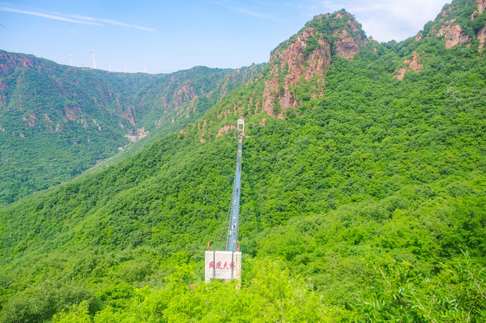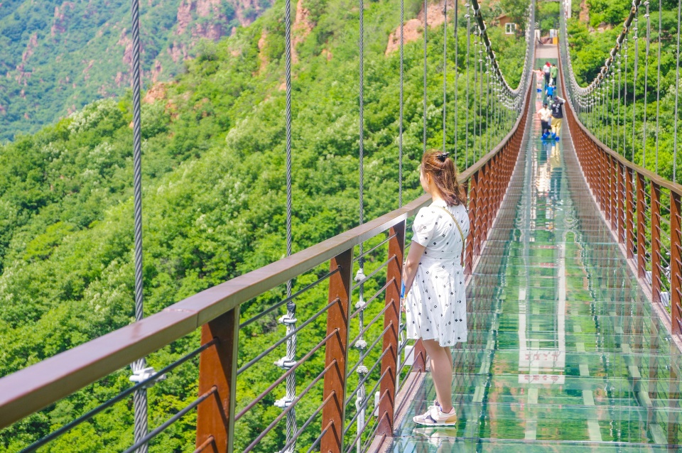 从玻璃滑道继续往前走,就是玻璃吊桥——凤凰天桥了。据雄鹰了解,这座天桥是中原地区首座悬索玻璃吊桥,全长210米,站在桥上眺望,真是无限风光尽收眼底。