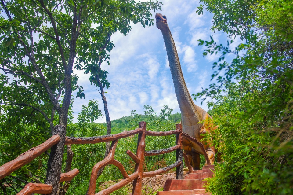 体验过玻璃吊桥,仍然有些意犹未尽的感觉。收拾收拾心情,继续前行,路上陈列着一些非常逼真的恐龙,比如霸王龙、蜿龙等等,有些还会发出逼真的吼叫,让雄鹰有种来到侏罗纪公园的既视感。
