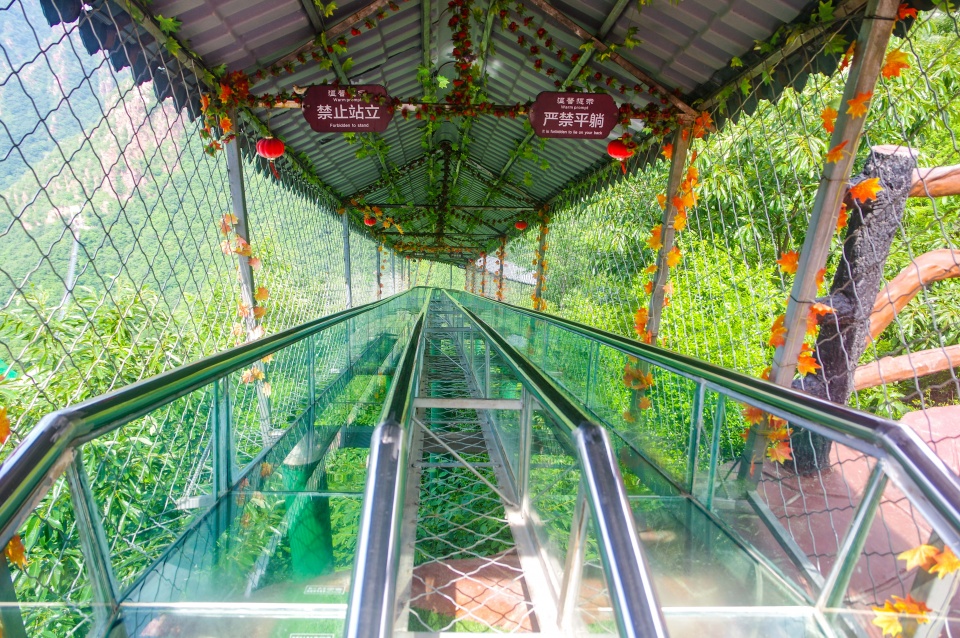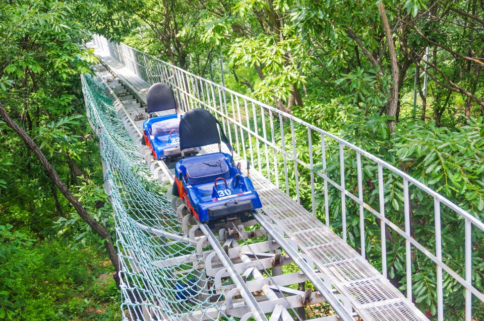 和大部分景区一样,三泉湖有两种游览方式,一种是沿着石阶下行。另一种是乘坐玻璃滑道,三泉湖的玻璃滑道是采用双人双排设计,全长280米,落差达108米,乘坐着特别舒服。