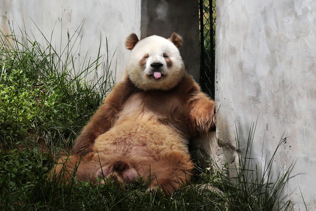 2021年5月28日,西安,周至县秦岭四宝科学公园试运营,园内全球唯一的圈养棕色大熊猫“七仔”与公众见面。中新社记者 张远 摄