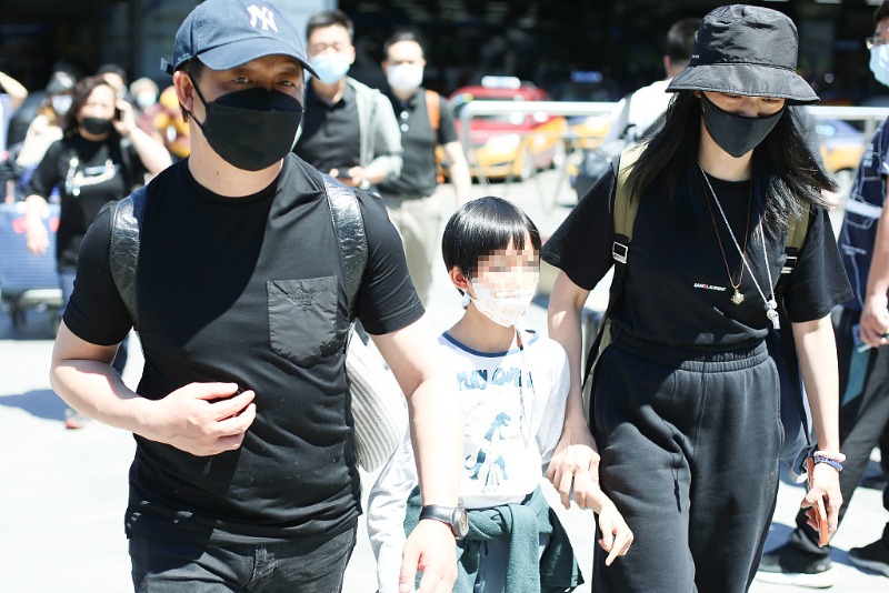 5月29日,北京,姚晨和老公曹郁带子女返回北京。