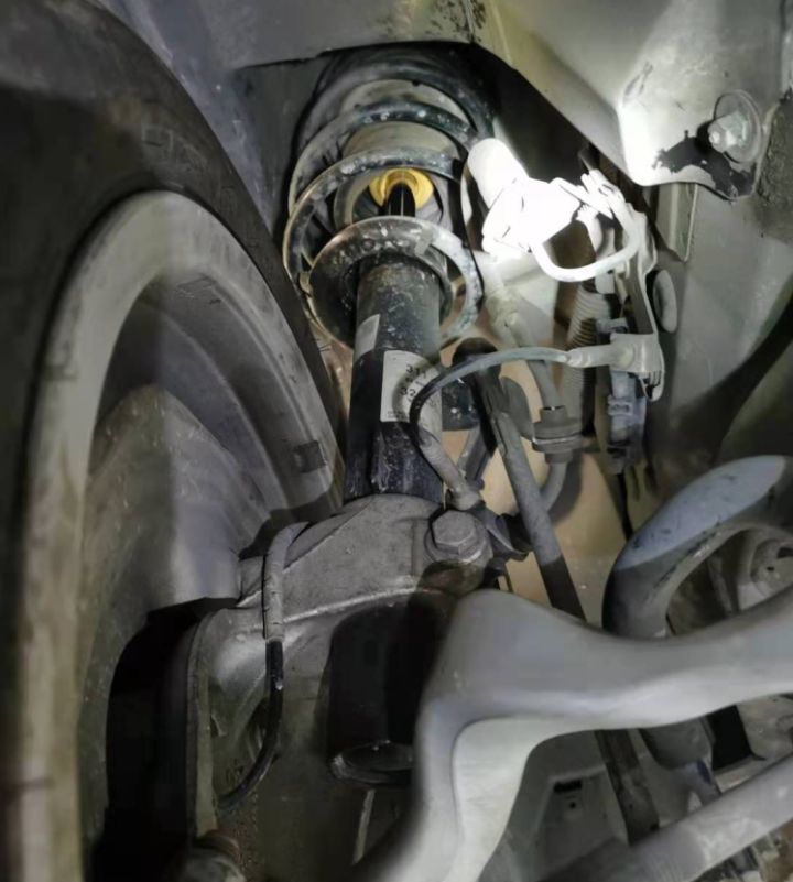 咳咳...听我宣布这辆车的悬架配置,前双接头弹簧减震支柱悬架带主销前倾后置,后中心臂式车桥带有纵向摆臂和双横向摆臂,虽然我也有点儿懵,但光听名字就很高级!而且四轮减震器以及部分支臂有维护更换,看表面没有什么灰尘,估计更换时间不长。客户小哥又省了一笔整备费用。