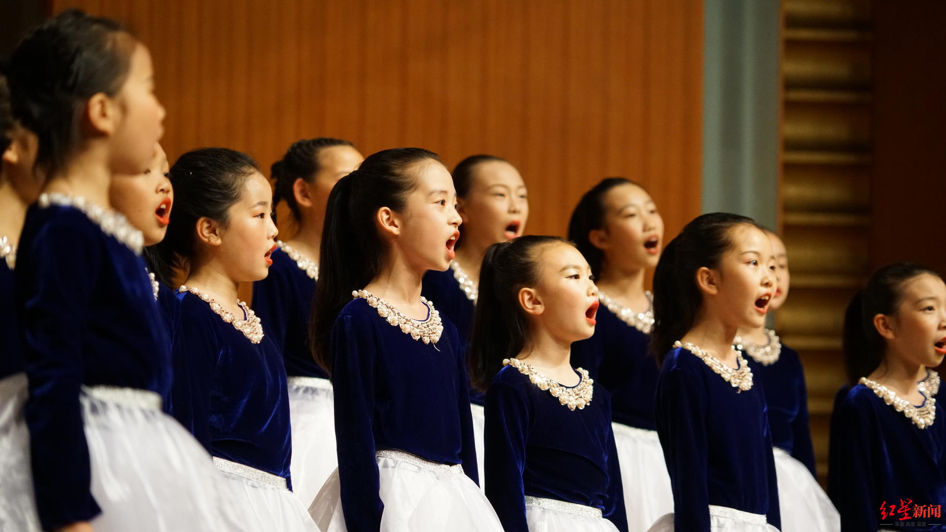 值得一提的是,成都爱乐童声合唱团是当晚唯一由全市多所学校学生组成的合唱团,也是中国西部地区极具影响力的青少年艺术团体。而桐梓林小学“桐声”合唱团去年9月才成立,通过有计划的学习,有目的地训练,队员们演唱水平不断提高,曾在成都“维童之友”合唱艺术节上斩获最佳表现力奖。合唱团一位小队员告诉红星新闻记者,虽然大家组团的时间不长,但在老师们的悉心指导下,有了不小的进步,感谢此次合唱节给队员们带来一个展示自己的舞台。