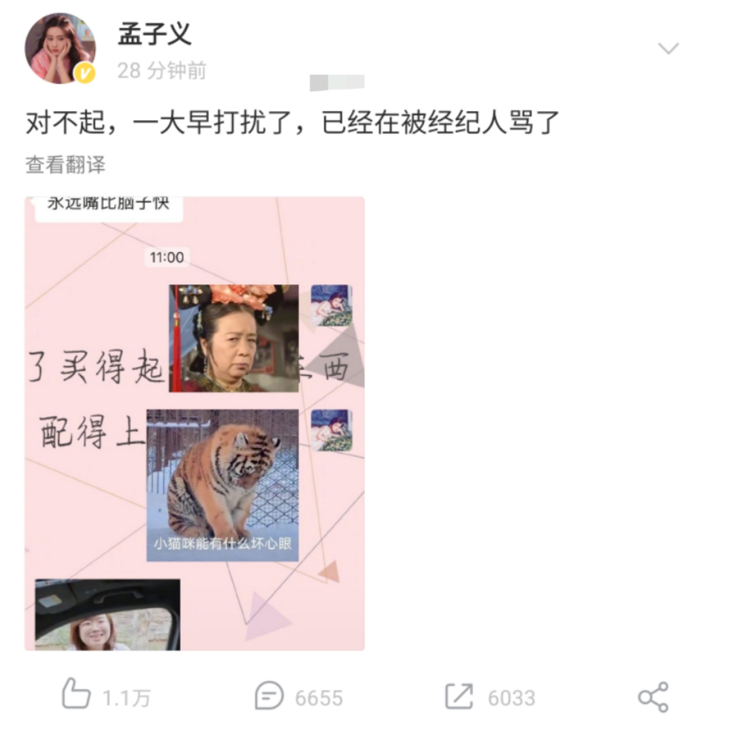 【孟子义被经纪人骂没脑子】5月30日孟子义在社交平台上发文,为昨日播出的《五十公里桃花坞》言行进行道歉:“对不起,一大早打扰大家了。”可以从图片上看到,孟子义的经纪人对孟子义也是很无奈,对于网友所说的孟子义情商低,经纪人根本不认可,直接说了句:“你那是没脑子。”孟子义表示自己并没有什么坏心眼,粉丝也颇为认可:“孟孟只是嘴比较快而已。”“没关系的,我们还是一样爱你。”据悉,孟子义在《五十公里桃花坞》中,在看见郭麒麟和自己的服饰相似时说了一句:“你不会是要和我炒CP吧。”被网友抨击情商太低,说话让讲相声的都接不下去。大家是怎么看孟子义说话之道的呢?
