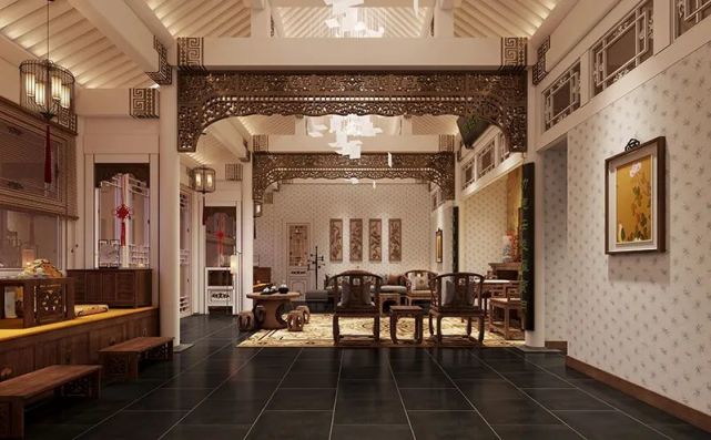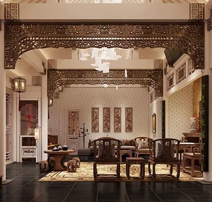 宽敞的三进院落,仿佛巨大的画布,让我们将传统中式元素有机的结合,格花门窗,雕梁画栋,镂空花罩,典雅家居,用每个完美的细节,构成我们对于生活的最高理想。