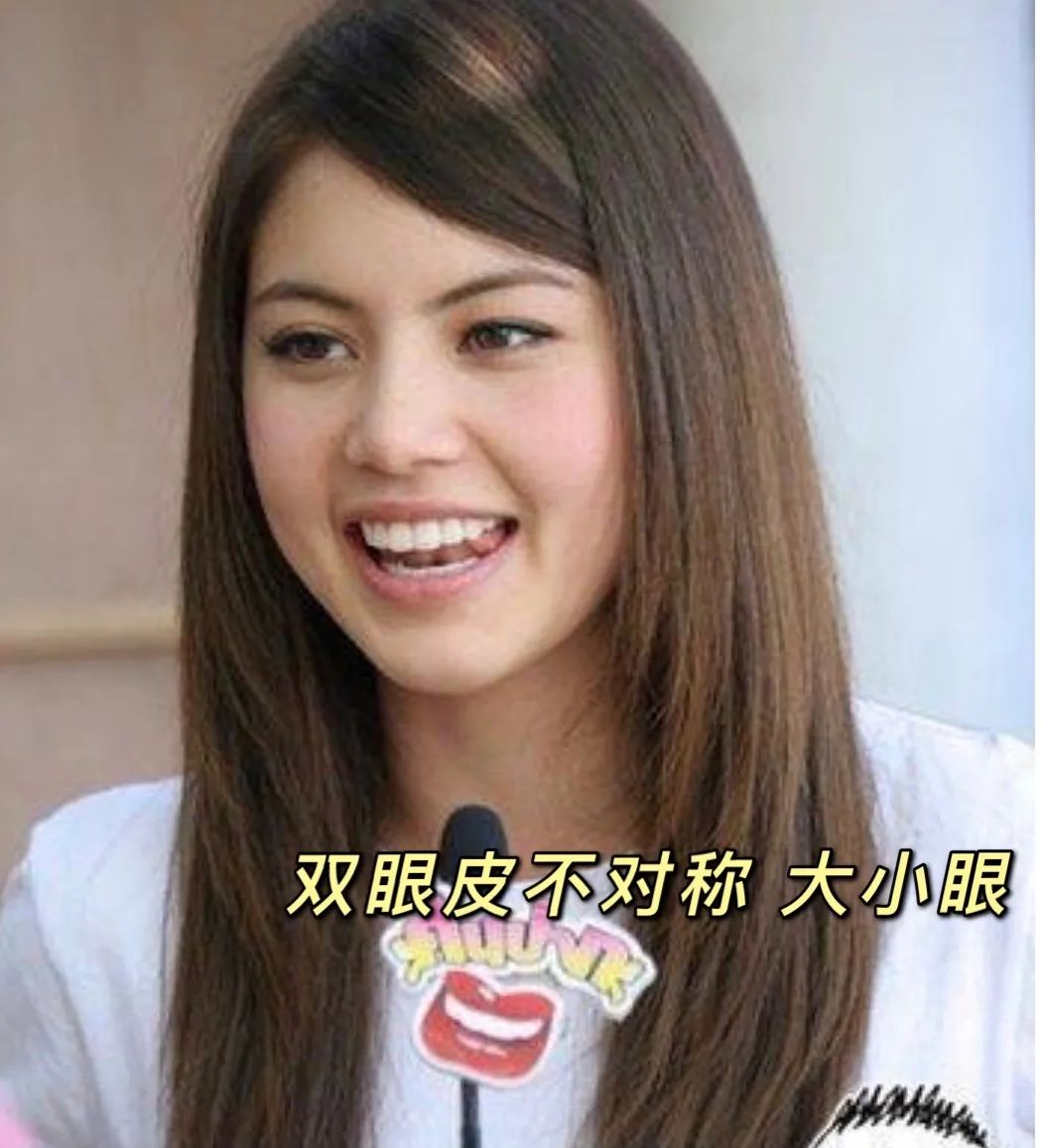 右眼内双,左眼平行,不对称的双眼皮褶皱,让大小眼看起来很明显。