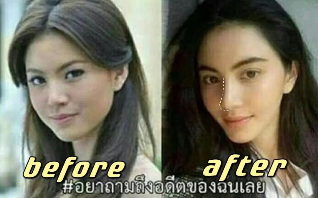 选择立体直鼻与大气泰式的脸型相呼应。鼻部的改造不仅拉出了面中,也在细节上优化了山根的流畅和鼻头的精致度。