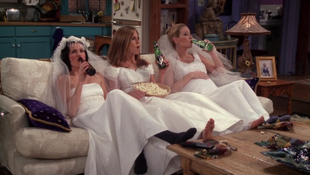 一个有意思的现象是,剧名虽叫《Friends》,但全剧六个主要人物,其中有四个在这个小圈子里解决了婚姻大事,从朋友转型为夫妻。