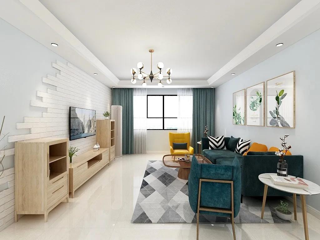 客厅原木色电视柜,干净纯粹,更加亲近自然,营造出线条简洁的视觉感,搭配绿色的软装和清新的挂画,也可为家居环境增添一抹清新的色彩。