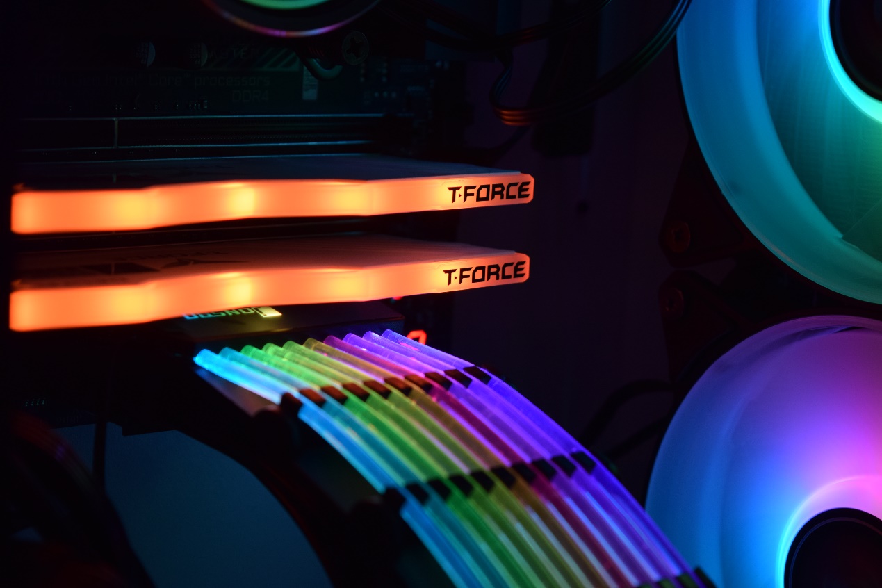 内存条为十铨Delta RGB DDR4 3200 8G*2,采用主流常见的无螺丝铝合金外壳设计,顶部灯光带实现了120度广角的发光区。十铨Delta RGB内存条支持与传统四大灯光主板厂商的灯光同步,同时也支持与七彩虹iGame主板的灯光同步,可以完全满足不同玩家自定义灯光的需求。十铨Delta RGB DDR4采用的是原厂颗粒,CPU-Z中显示的是SK Hynix,支持XMP2.0和DOCP/A-XMP,开启后十铨Delta RGB内存条默认时序为16-18-18-38。