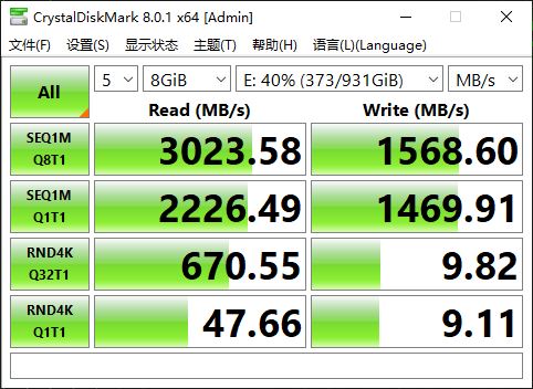 下图是ORICO USB4.0硬盘盒的测试结果,顺序读写性能分别为3023.58MB/s和1568.6MB/s。