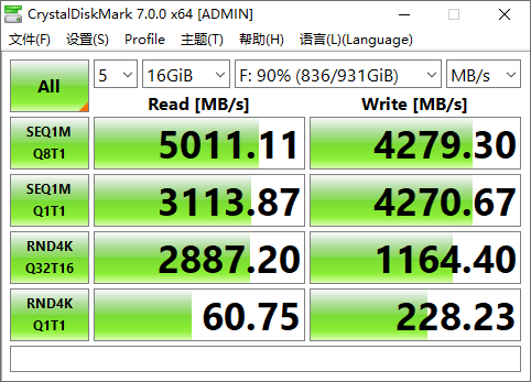 搭配测试的SSD是 GEN4 SSD,顺序读写性能分别是5000MB/s和4280MB/s,而这款ORICO USB4.0硬盘盒标称的最大顺序读写性能分别是2700MB/s和1400MB/s,也就是说GEN4 SSD在读写性能方面不会成为瓶颈,可以确保最大的测试结果。