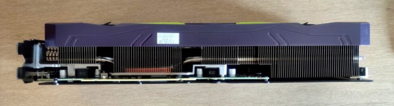 该卡具有双 8pin 电源连接口,不过 PCB 明显比散热器短。