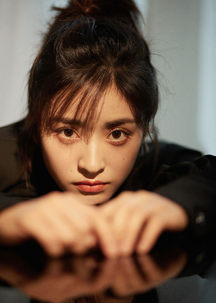 沈月写真扎高马尾刘海凌乱 妆容简单眼神清澈呈自然美