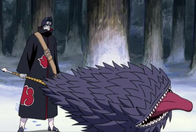 飞段。当时出山宣传邪神教,小南鼬和角都亲自上门查探邀请,由角都试探过了飞段的能力后,邀请加入,不过跟着角都就有点惨了,一次脑袋掉了,最后被鹿丸埋起来,不死之身也废了。