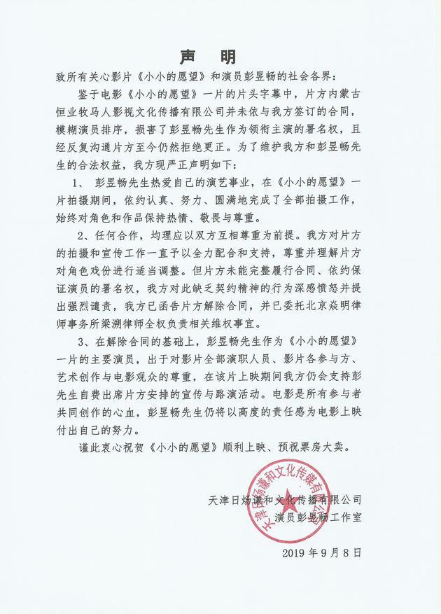 前两年,彭昱畅、魏大勋、王大陆主演的电影《小小的愿望》上映。