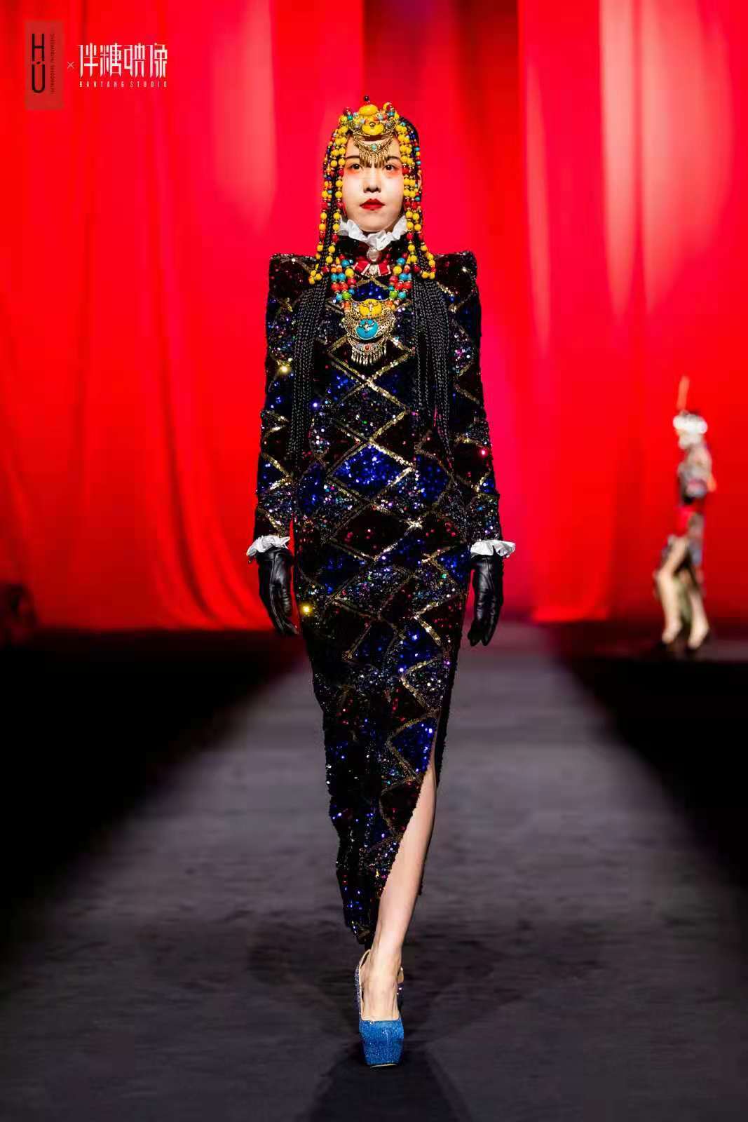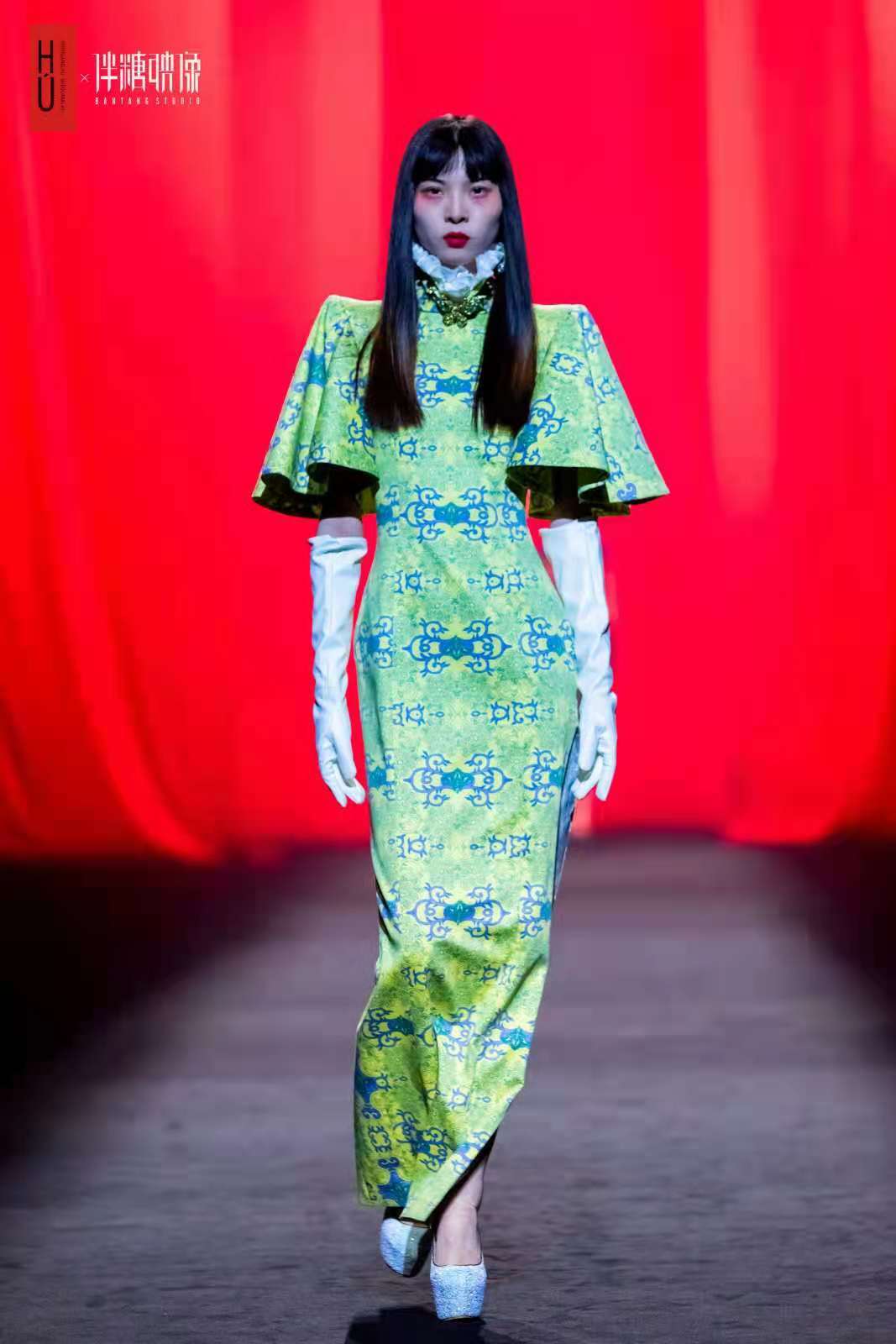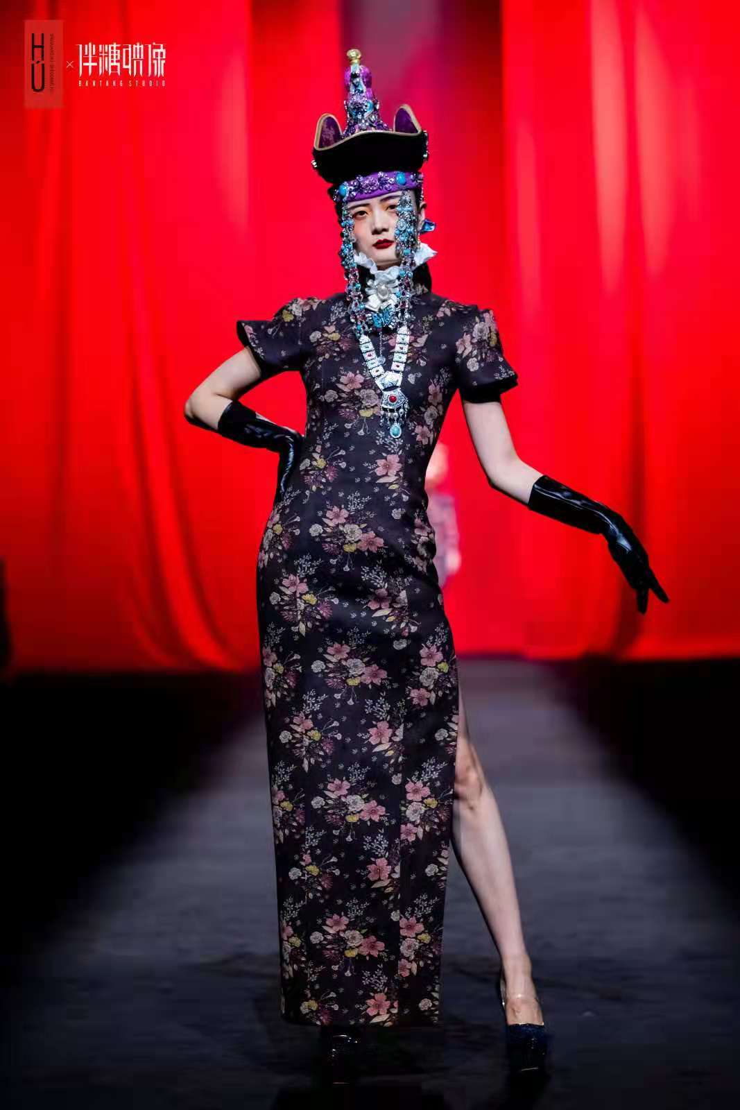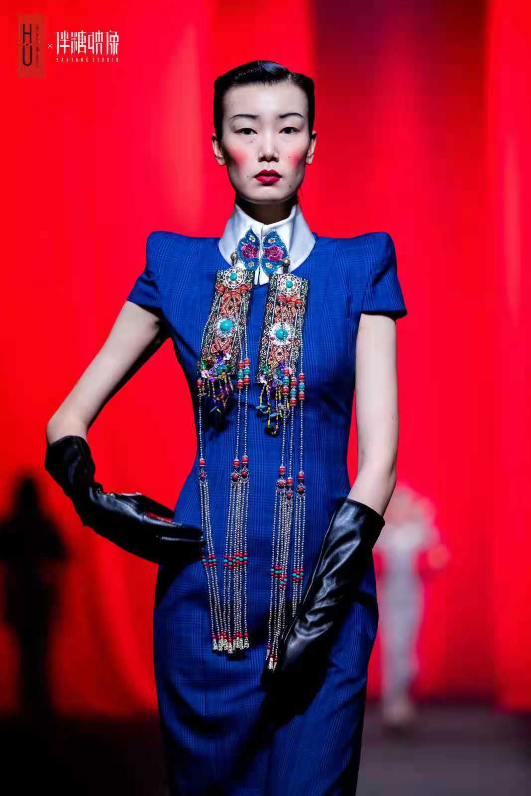 著名设计师胡社光最擅长将中国文化和历史演变为时尚语言,此次旗袍设计采用极具民族特色的俏肩设计,廓型上结合立体裁剪和中式留白,为旗袍赋予恢弘壮阔、策马飞扬的动态美,将唯美浪漫的风格赋予旗袍的曲线中。旗袍与56民族帽饰结合,这是前所未有的一种配饰方式,为大秀赋予更丰富的层次,书写了国家和民族发展的壮丽史诗,向世界展现东方大国的深厚底蕴。在纹样中,采用中国传统非物质文化遗产中的经典元素,取材中国自然风光,一丝不苟的精致刺绣围绕周身,京绣、苗绣、苏绣、珠绣、提花等工艺,犹如一本中国文化“活字典”,展现中国态度、匠人匠心。采用雪纺、真丝、仿皮草、竹纤维等面料,经典也当下,时髦也入时。桃夭、秋香、凝脂、天缥、紫苑、月白……这些颜色取自自然、诗情画意,犹如彩虹般绚丽,这是旗袍颜色的感官意境。此次旗袍设计,在整体上呈现出和谐之美。