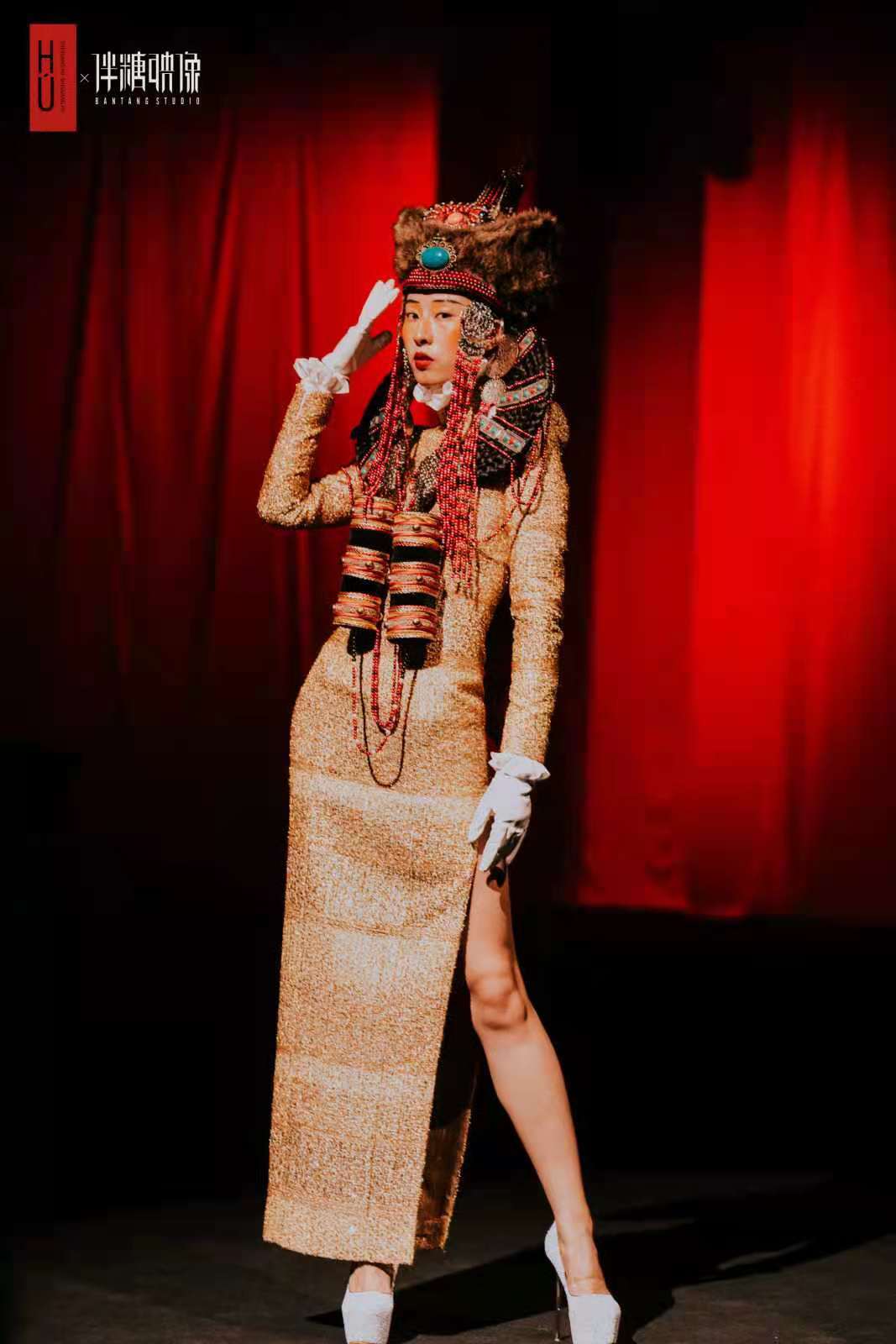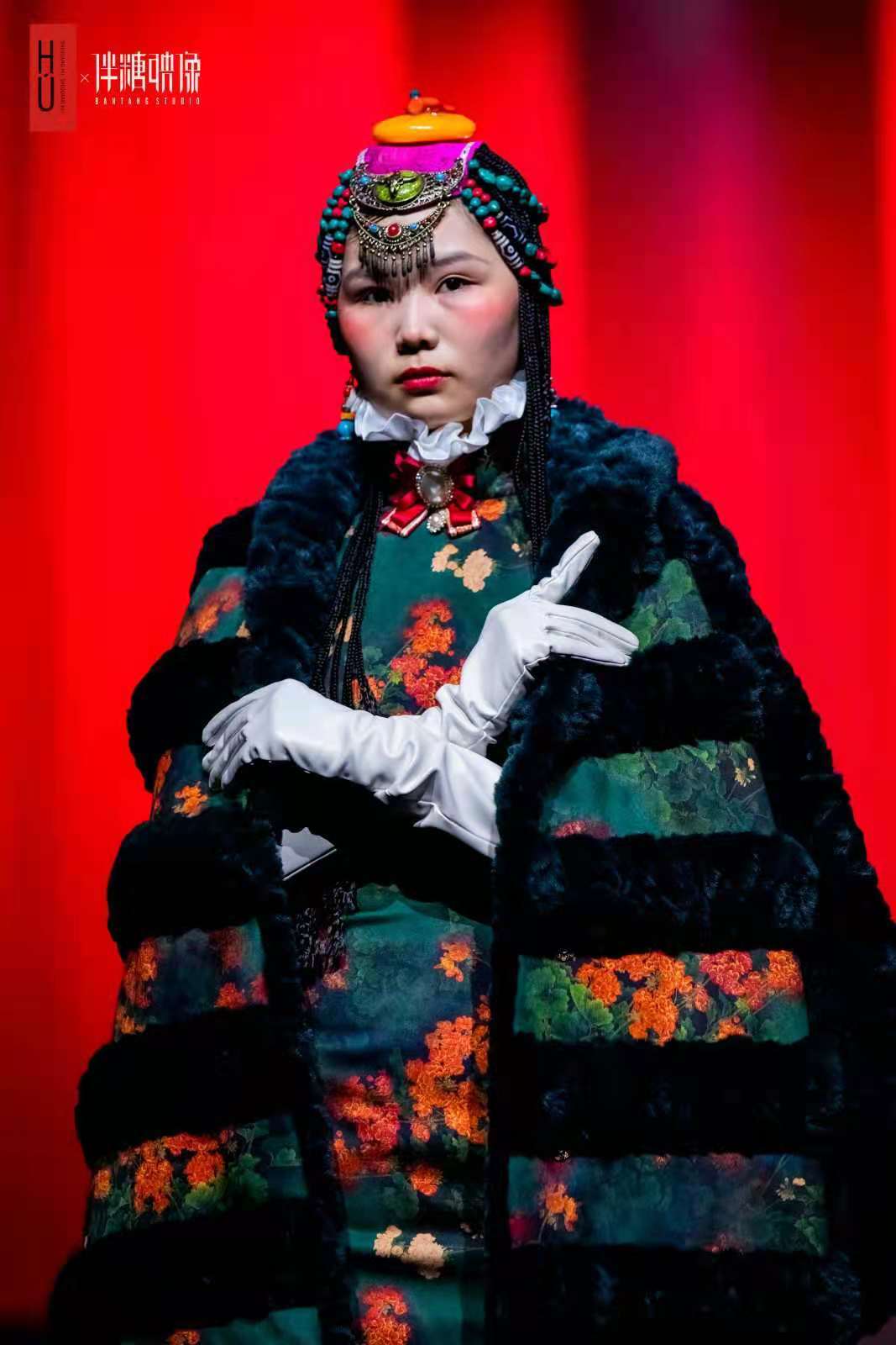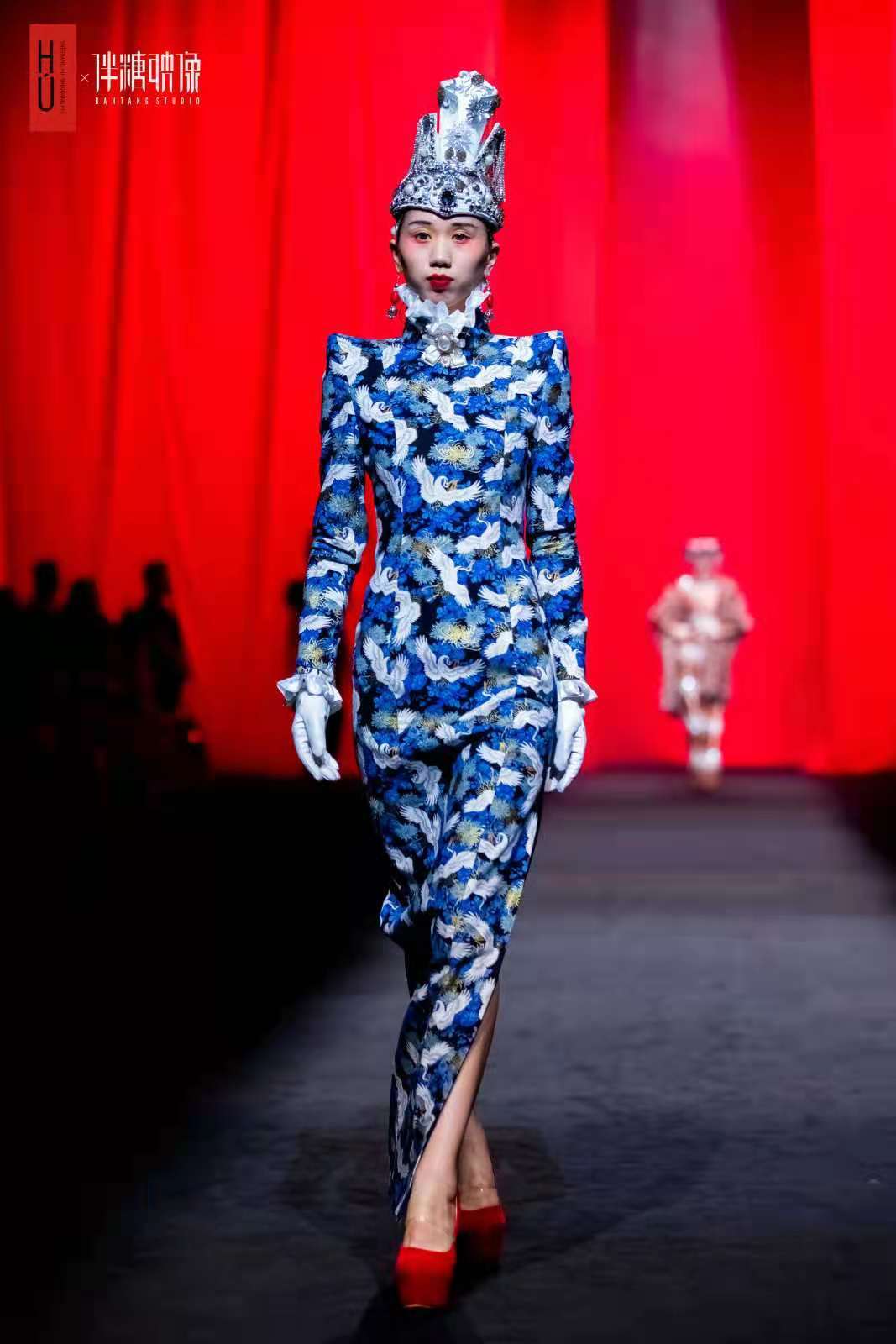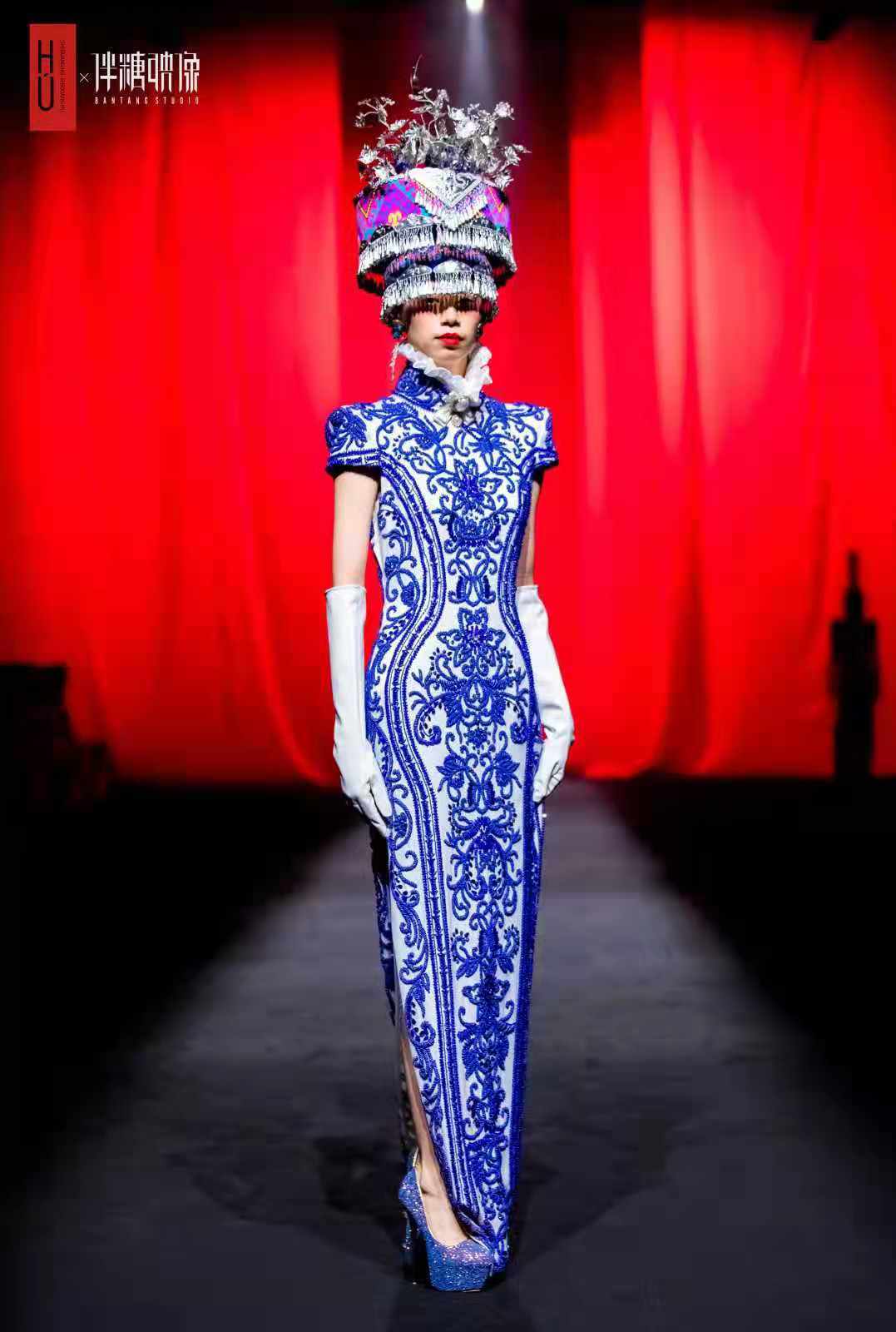 著名设计师胡社光最擅长将中国文化和历史演变为时尚语言,此次旗袍设计采用极具民族特色的俏肩设计,廓型上结合立体裁剪和中式留白,为旗袍赋予恢弘壮阔、策马飞扬的动态美,将唯美浪漫的风格赋予旗袍的曲线中。旗袍与56民族帽饰结合,这是前所未有的一种配饰方式,为大秀赋予更丰富的层次,书写了国家和民族发展的壮丽史诗,向世界展现东方大国的深厚底蕴。在纹样中,采用中国传统非物质文化遗产中的经典元素,取材中国自然风光,一丝不苟的精致刺绣围绕周身,京绣、苗绣、苏绣、珠绣、提花等工艺,犹如一本中国文化“活字典”,展现中国态度、匠人匠心。采用雪纺、真丝、仿皮草、竹纤维等面料,经典也当下,时髦也入时。桃夭、秋香、凝脂、天缥、紫苑、月白……这些颜色取自自然、诗情画意,犹如彩虹般绚丽,这是旗袍颜色的感官意境。此次旗袍设计,在整体上呈现出和谐之美。