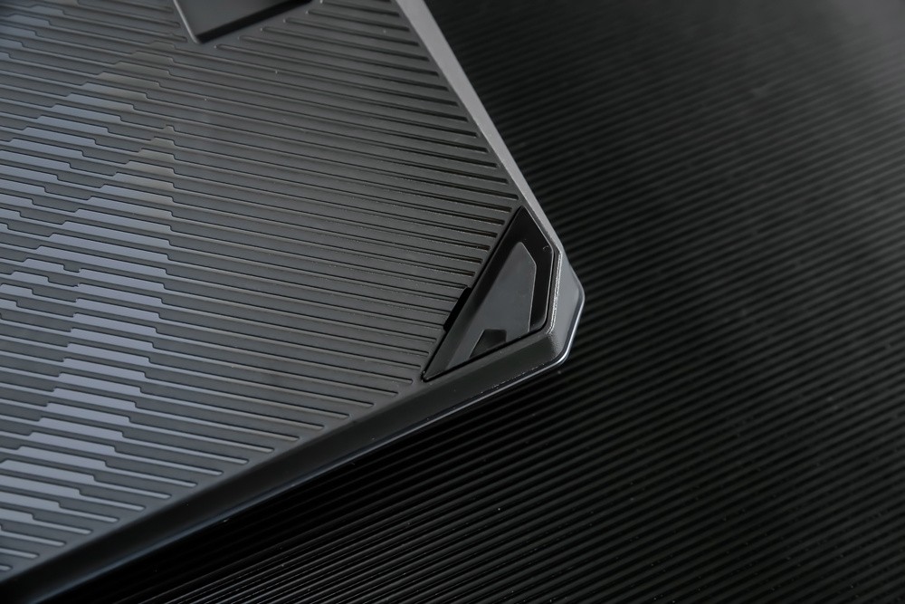 翻看键盘的底部,几何线条交错分割的特别设计,相对于平整的传统键盘底部设计,瞬间多了些科技时尚的即视感,至于防滑脚贴以及脚撑自然都是一应俱全。此外,键盘底部设计的2个排水孔,以及自身具备的IP56级防水防尘能力,自然能确保日常使用中,因为不小心将杯中液体泼溅到键盘或是因灰尘环境导致的键盘意外故障,使得键盘的使用寿命更加长久。
