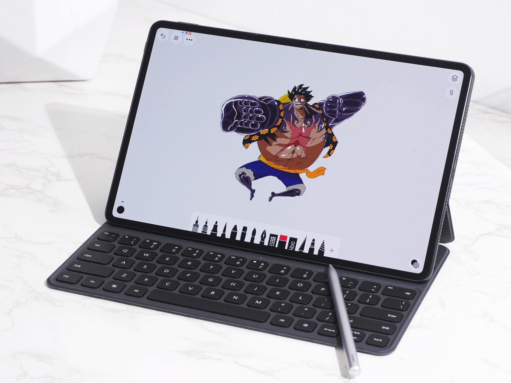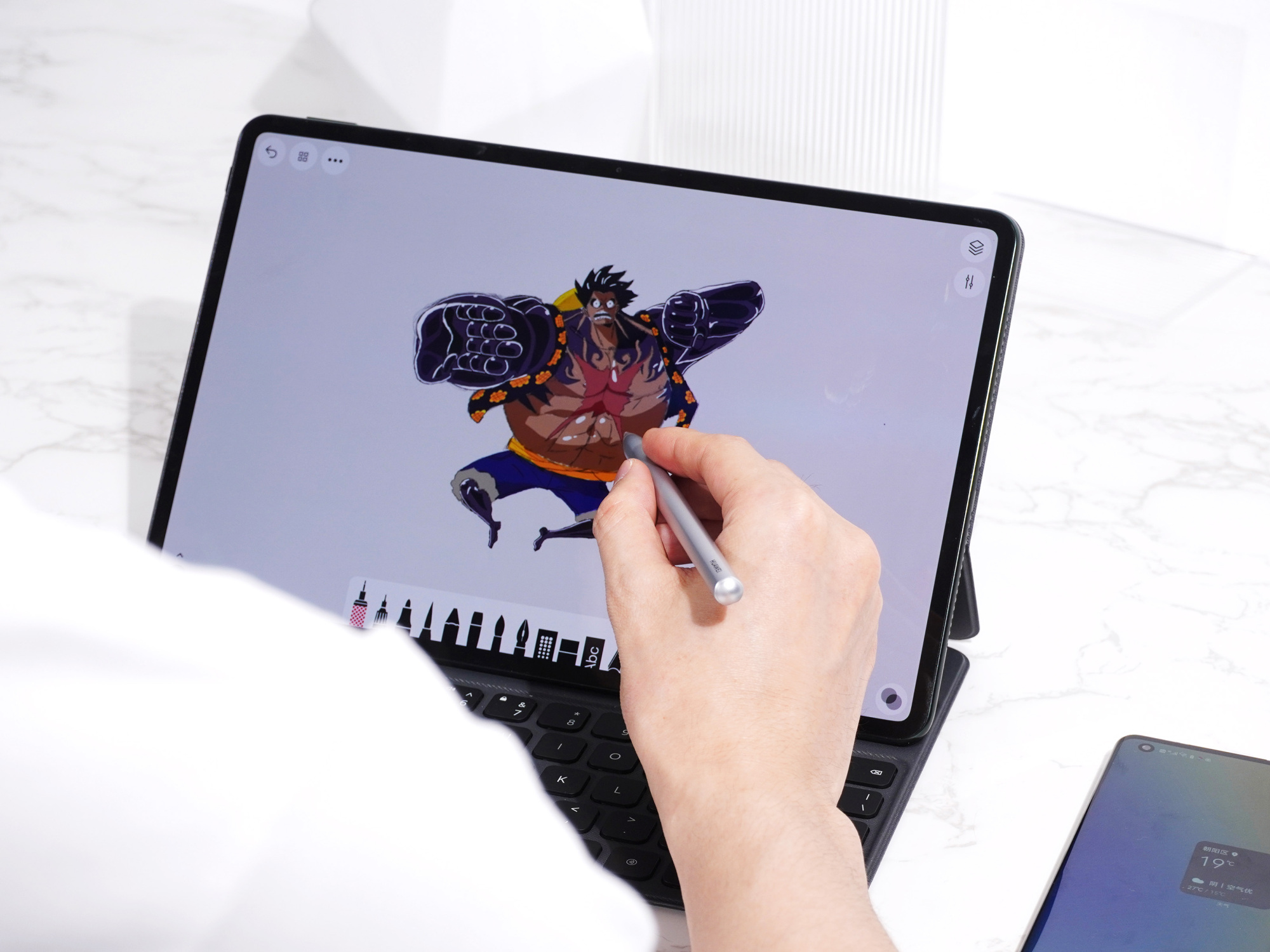 旗舰平板电脑,已经从影音娱乐、向轻办公/专业领域转移。为此,华为MatePad Pro 12.6英寸配备了第二代华为M-Pencil手写笔以及磁吸键盘。这里要重点说一下第二代华为M-Pencil手写笔,透明磨砂笔尖设计书写舒适/延迟极低,虽然不像三星手写笔那样的软头磨砂感,但带来了较为温和的触感以及相当好的跟手感,没有笔尖与玻璃接触的撕拉感,必须给个好评。同时,第二代华为M-Pencil手写笔还支持全局书写功能,熄屏以及任意需要输入的地方都能使用。