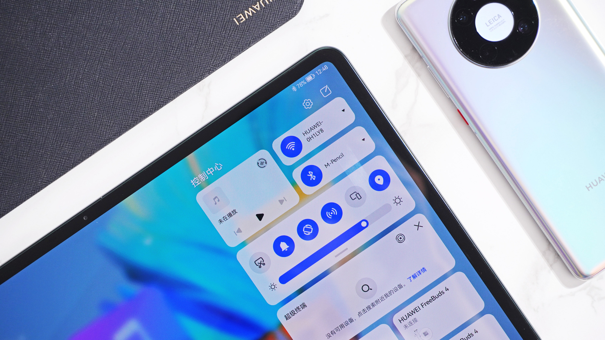 这里额外说一点:如果你的手机和平板登陆同一华为账号、且在同一Wi-Fi,华为MatePad Pro 12.6英寸控制中心的超级终端还可一键协同,无需碰触,更加方便。