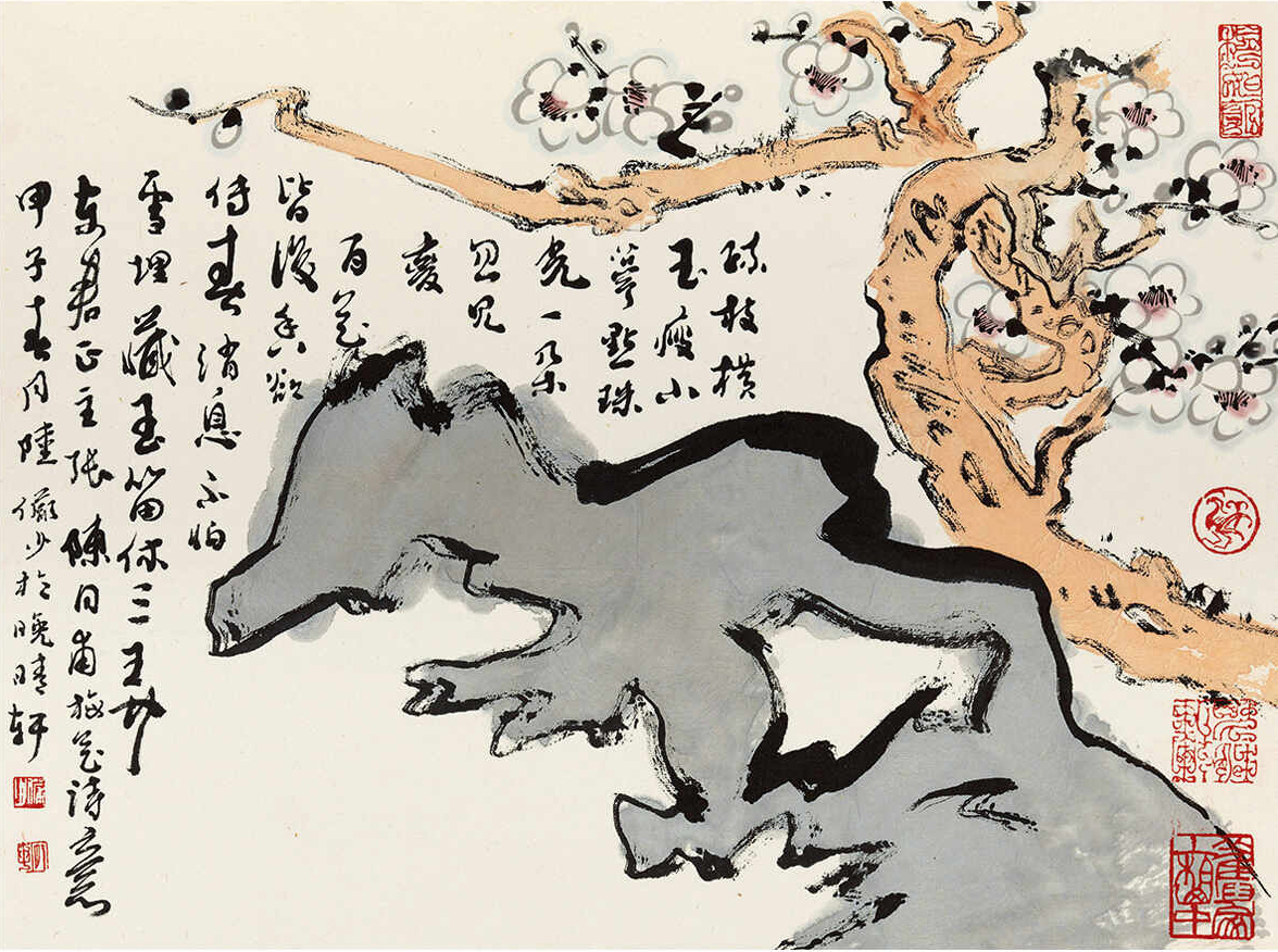 题识:妍日似趣梅花开。甲子元月,陆俨少写于西子湖上。