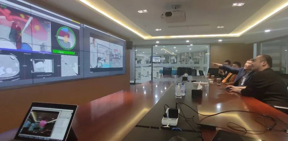 上图:董家鸿院士5G远程模拟指导基层医院医生开展IQQA-Guide导航下的微创介入手术