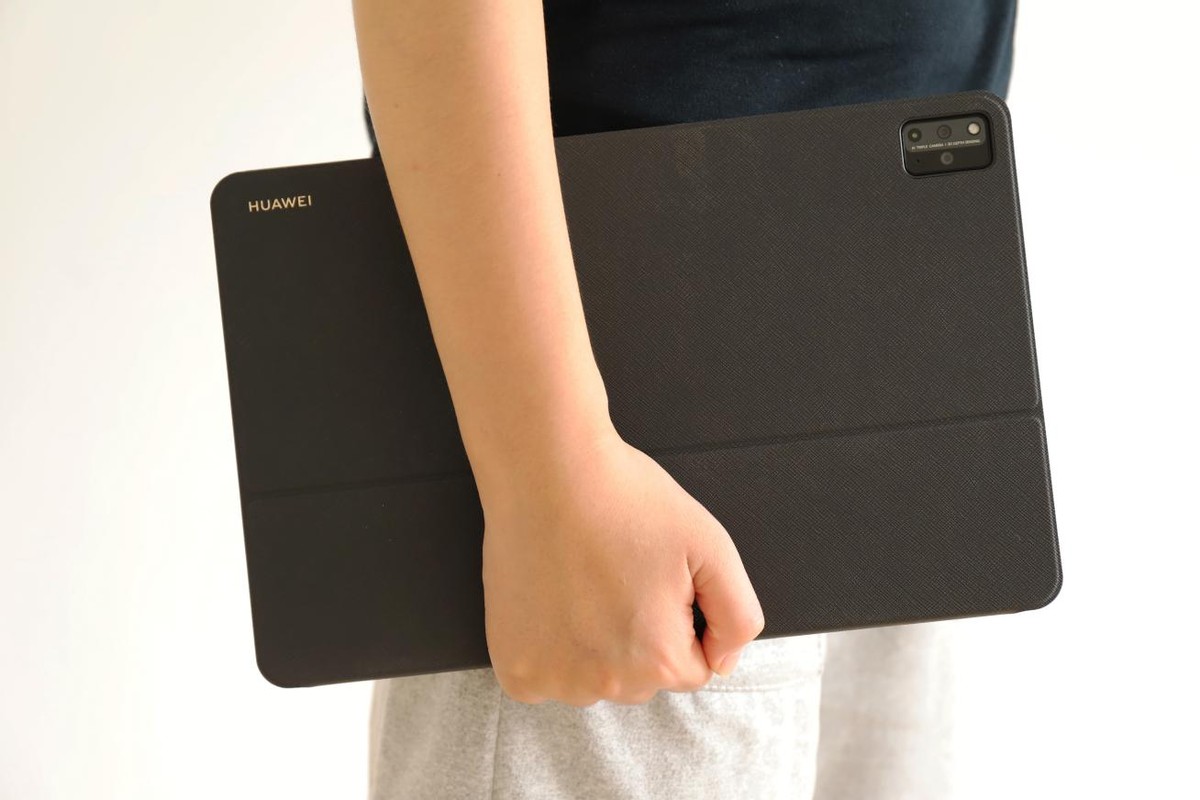 机身背部设计上,我们评测的这款全新华为MatePad Pro背部采用的是烤漆工艺的后盖,另外还有素皮材质版本,采用烤漆工艺能避免过分沾染指纹,保持产品的整洁,如果配合华为全新智能磁吸键盘来使用,则能变成“皮质”的后盖,也能更好地保护产品不受磨损。