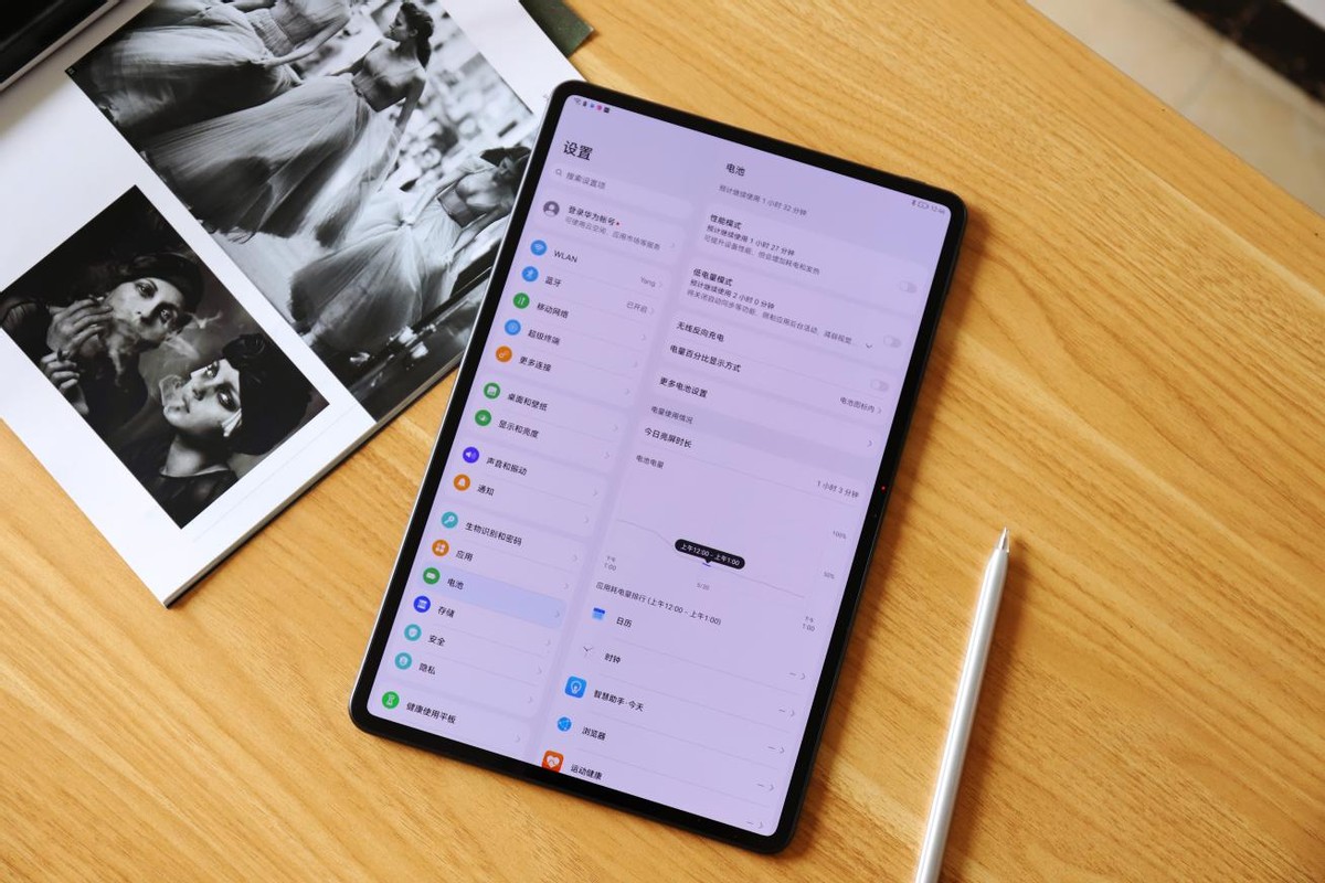 最后,全新华为MatePad Pro作为一款注重生产力的平板,在续航上也有不错的表现其器 配备了10050mAh的超大电池,正常使用下一天一充没有问题,同时还搭载了40W的超级快充,实际的测试中,30分钟大约可以充进21%的电量,完全充满大约需要75分钟,此外还支持了10W反向无线充电技术,意味着全新华为MatePad Pro还能够给支持无线充电的手机、手表等设备充电,出差时还是比较方便的。