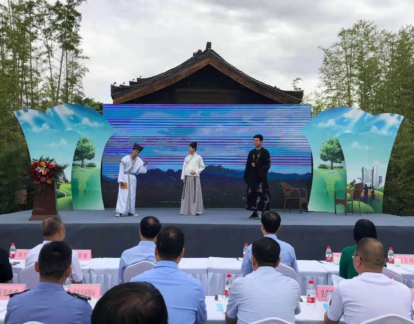 最后,参与活动人员一同欣赏了周至县生态环境局干部职工代表演唱的原创歌曲《生态周至之歌》、西安建筑科技大学志愿者表演的小品《新版孔子东游记》。文艺演出不仅活跃了现场气氛,还生动形象的传达出关爱自然、保护环境的重要性,普及了生态环境保护法律法规和科学知识。