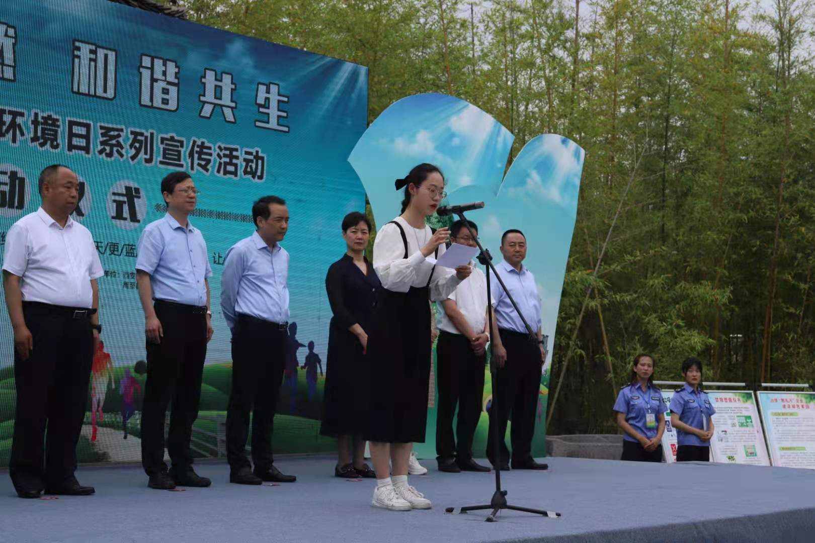 西安市生态环境局督察专员赵学功在讲话时强调,今年世界环境日和我国六五环境日的主题是“人与自然和谐共生”,旨在进一步唤醒全社会保护生物多样性的意识,号召人人尊重自然、顺应自然、保护自然,建设人与自然和谐共生的美丽家园。大家要像保护眼睛一样保护生态环境,像对待生命一样对待生态环境,切实履行好呵护自然的责任,共同努力让西安的山更绿、天更蓝、水更清,共同谱写推进绿色发展、建设生态西安新篇章。